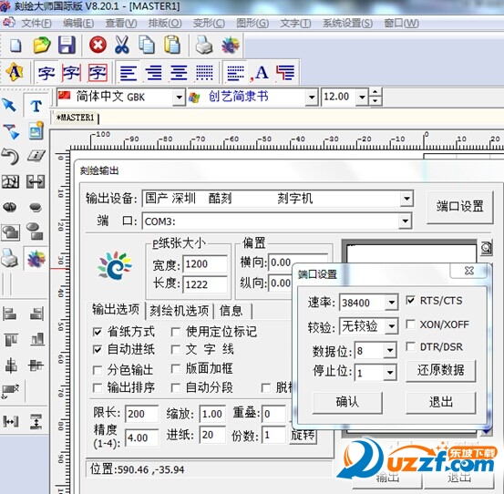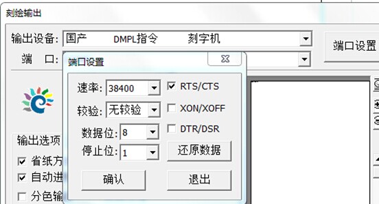 输出设置中选择端口设置-速率:38400,RTS/CTS。其它不用设置,这样就可以正常的用刻绘大师进行输出了。