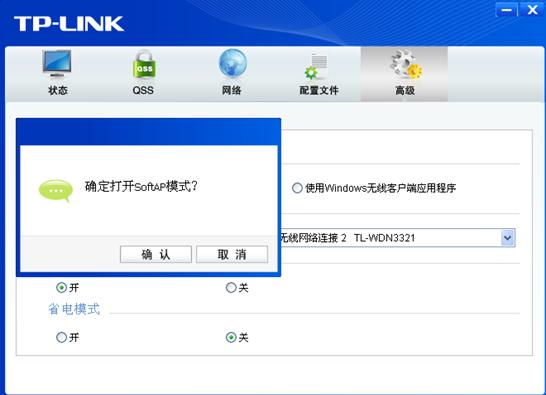 2.SoftAP模式,选择“开”,提示“确认打开SoftAP模式”,点击“确认”。会显示“正在设置SoftAP模式,请稍后”,然后会提示“正在设置SoftAP模式成功”。
