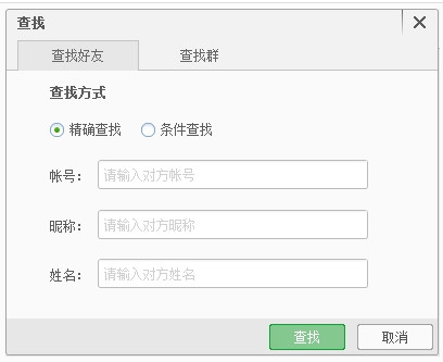 3、发现可以查找好友,也可以查找群,很不错。如果知道好友的具体的账号就直接在精确查找里面添加。