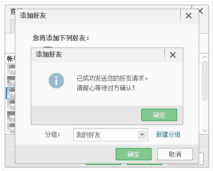 7、好友添加请求发送完毕,等待对方确认是否添加为好友!