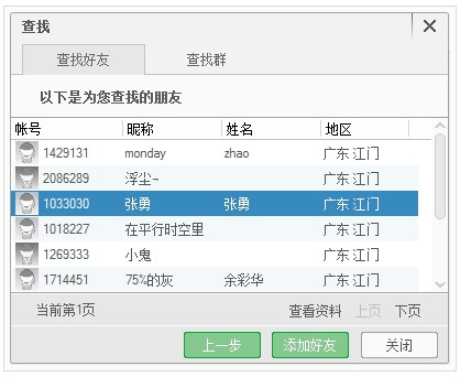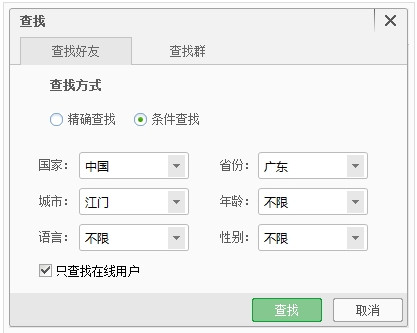 5、设置好查找条件点击【查找】就会找到你想要的好友。