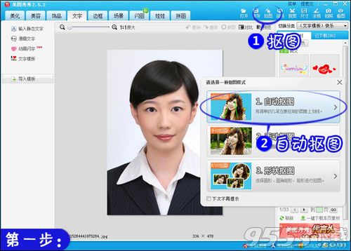 1.用“美图秀秀”打开一张图片,单击右上角的“抠图”并选择“自动抠图”功能,如图2所示。