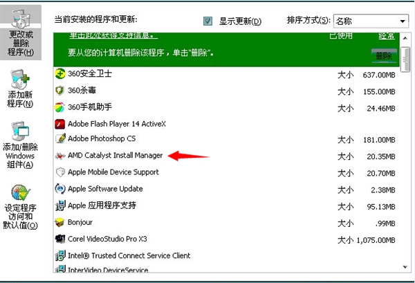 1、在控制面板中卸载相应的显卡驱动(如下图)并重启计算机:
