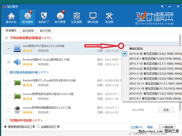 这里说的是更换,不是更新,可以在驱动精灵中选择不同版本的显卡驱动安装,肯定会有一款适合你