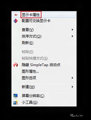 (1) 桌面空白处点击鼠标右键,在弹出菜单中选择“显示卡属性”。如下图所示: