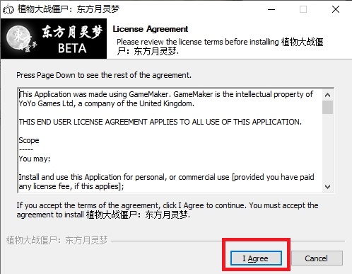 1、在本页面下载游戏程序之后点击打开,然后就会进入到安装界面,在界面中点击【I Agree】同意条款;