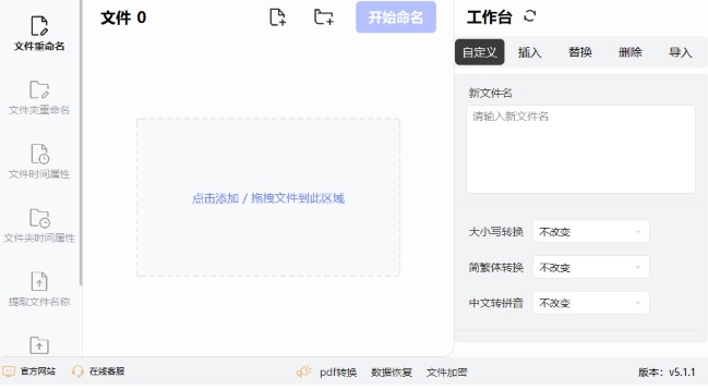 2.在右侧的操作面板中,您可以选择五种命名方式:自定义命名、字符插入、字符替换、字符删除或导入命名规则。