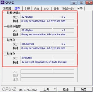 cpu-z的缓存中我们可以看到cpu处理器的一级、二级和三级缓存数据,由此可以判断该处理器的性能。