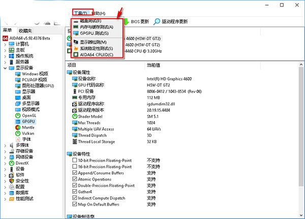 9.工具,在工具菜单中为用户提供磁盘测试.内存与缓存测试等多种工具,帮助您更好的检测您的PC。