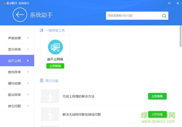 驱动精灵系统助手是一款功能强大的系统辅助工具,您的电脑出现任何状况,通过这款软件就可以快速帮你修复,需要的朋友欢迎来绿色资源网免费下载使用。