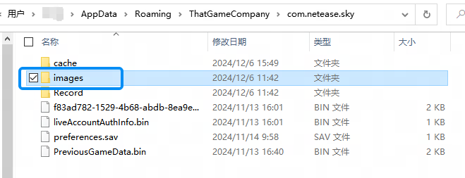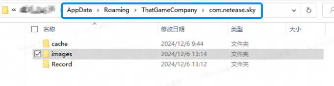 ③第三步,退回到上一级com.netease.sky后,打开images,即可找到照片。