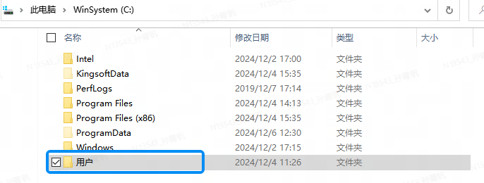 ①第一步,在此电脑——C盘中打开用户(部分电脑为users);