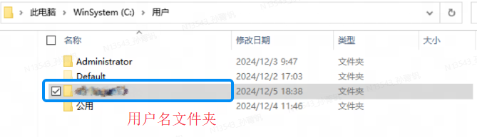 ②第二步,找到您的用户名文件夹,文件夹的名字是您登录电脑时使用的用户名;