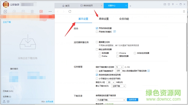 1.在绿色资源网下载并安装迅雷最新版,双击打开(如下图就是主界面了)。