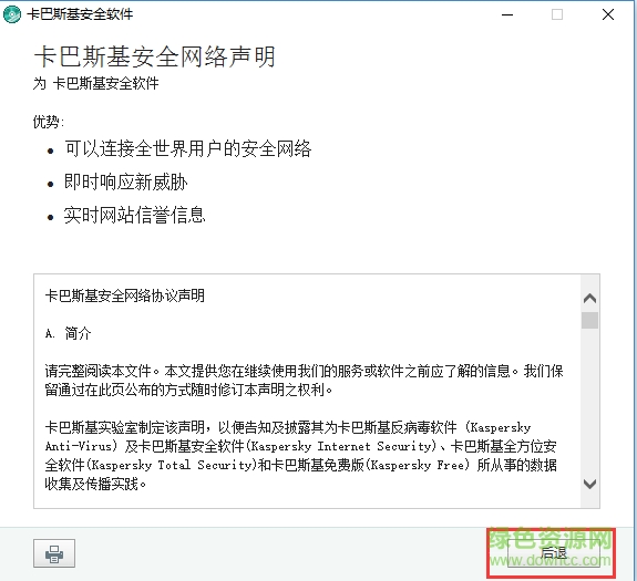 步骤 6. 点击链接查看卡巴斯基安全网络声明。