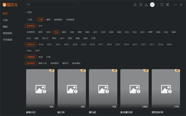 1、进入电脑版后将会看到有超多的动漫作品资源,在左边可以看到有过日漫、国漫等类型;
