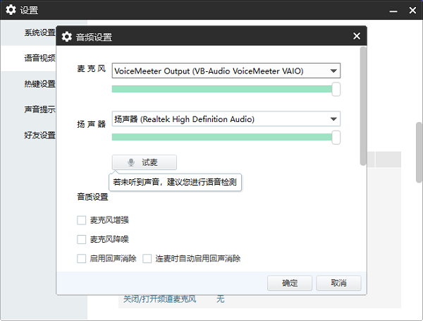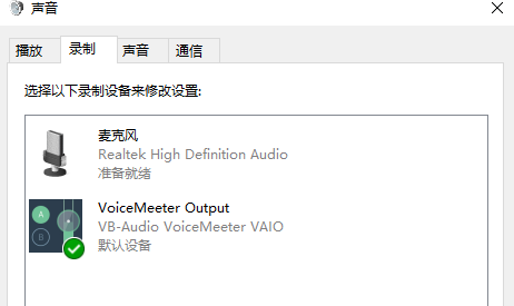 第六步:电脑声音面板设置,播放设备默认选择电脑自带扬声器,默认录制通道选择变声通道,直播软件的麦克风选择以V开头的变声通道,扬声器则选择电脑自带的扬声器。
