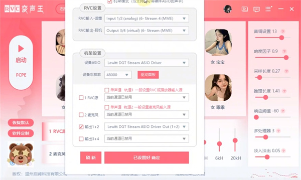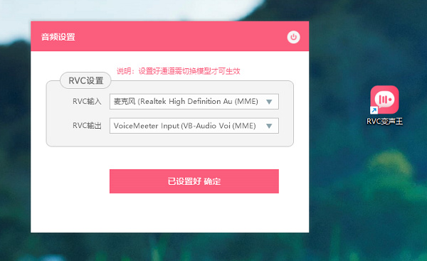 第三步,打开RVC变声王主程序,设置RVC的输入和输出,并选择确定按钮;