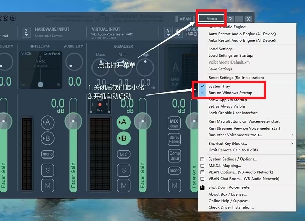 第五步,RVC变声驱动面板说明,左侧这个轨道是控制麦克风原声,A是代表原声监听,B是则代表原声的输出,右侧这个轨道是控制RVC变声的虚拟通道,A表示变声监听,B表示变声的输出,最右侧2个轨道分别表示监听音量和输出到直播间或者录音的音量;
