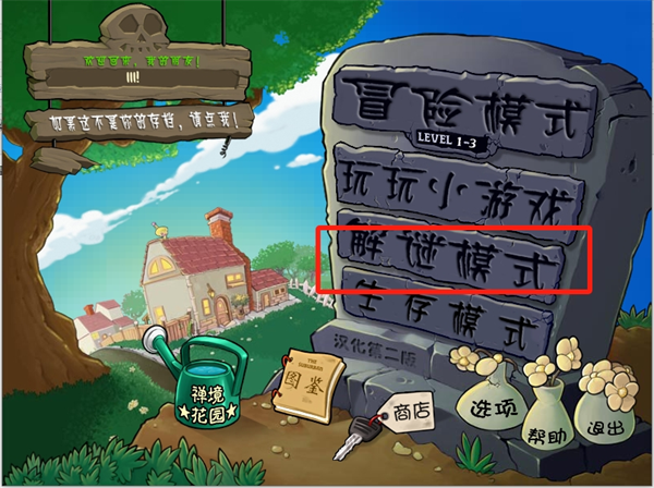 1、进入游戏后可以看到有很多的模式可以选择,砸罐子模式在解谜模式中找寻;