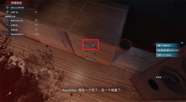 4、打开后可以看见抽屉内的物品,可以将对自己有用的物体拾取到自己的背包之中,以便后期进行使用;