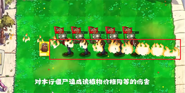2、在铲除的过程中,还会对本行的僵尸造成致命性的伤害,即快速的烧死僵尸;