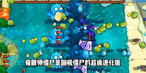 1、如今该版本新增了睡眠师僵尸,这个僵尸是蹦极僵尸的进化版不仅可以偷走植物还会让周边僵尸沉睡;