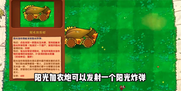 3、如今在变异的道具中还增加了阳光加农炮植物,这个植物在攻击对方后还会出现超多的阳光可以收集;