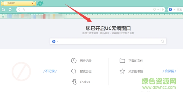 3.来到无痕窗口,这里提示不会记录历史,也就不会留下记录