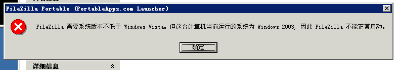 fileilla只支持vista及以上系统,xp和2003用户无法打开。