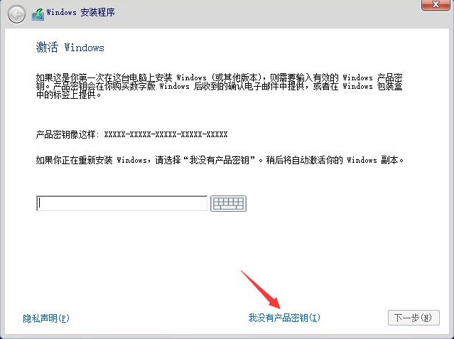 这里不填,直接选择“我没有产品密钥”,后面再激活