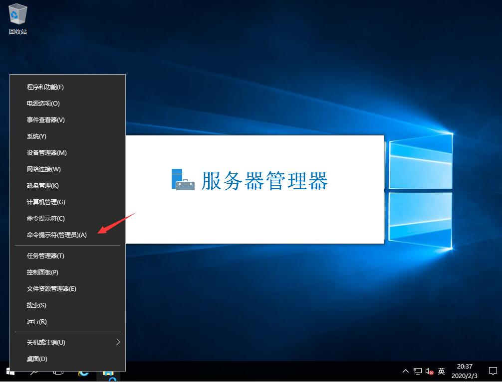 鼠标右击桌面左下角,选择命令提示符管理员