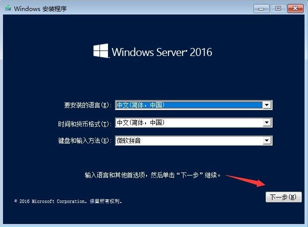 选择语言(肯定是中文简体)和输入法,点击“下一步”