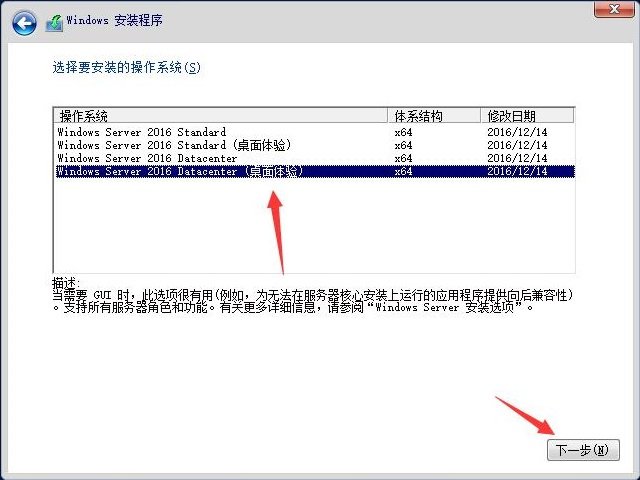 这里注意了。桌面体验是有桌面的。没有桌面体验的是没有gui的。需要命令去操作
