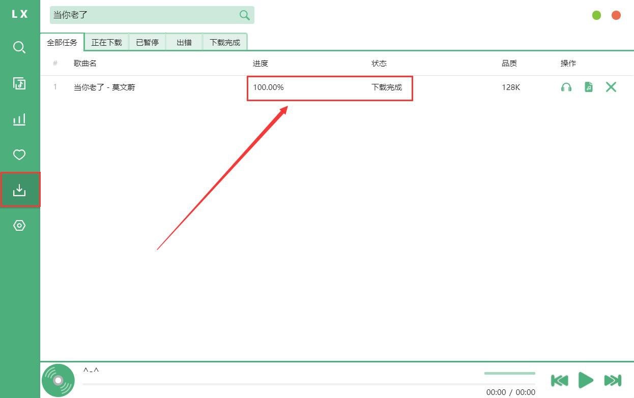 最后切换至"下载"界面,可以看到歌曲已经下载完成。