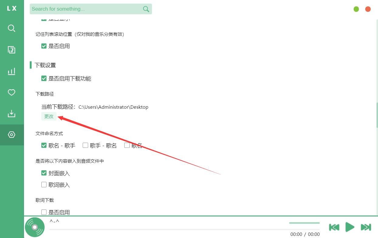歌曲保存路径需要更改的话,就点击"更改"按钮。