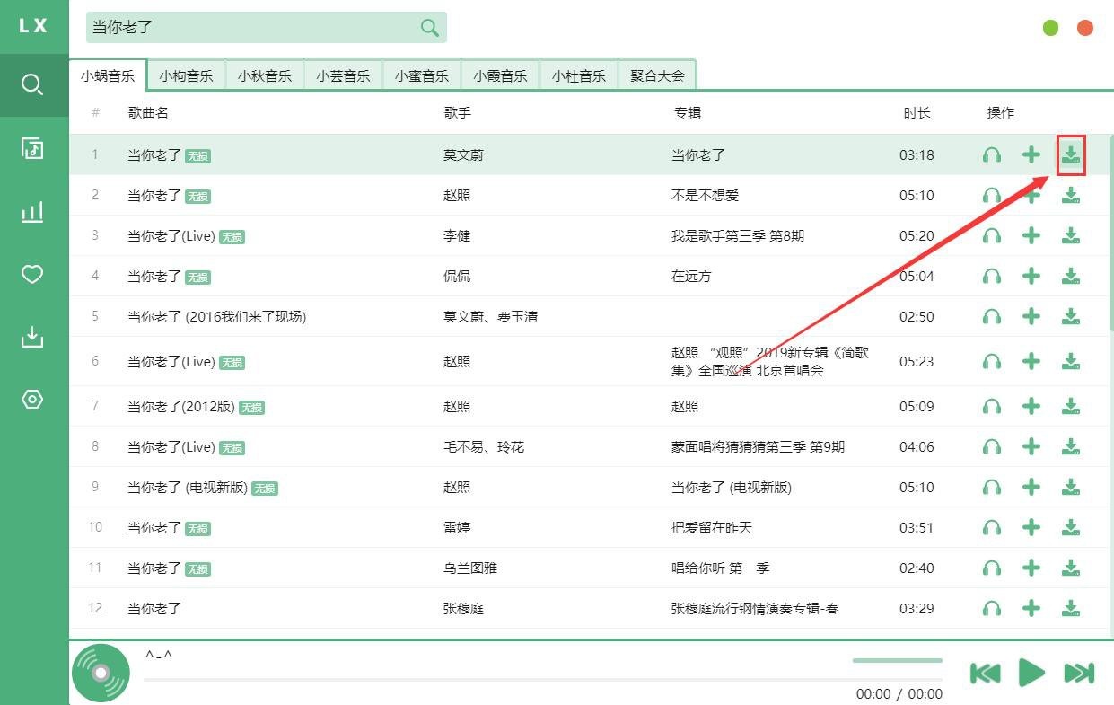 点击自己想要下载的歌曲中的下载按钮,开始下载歌曲。