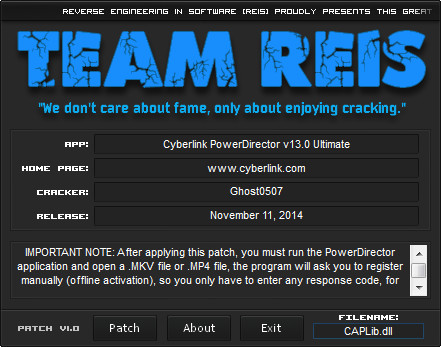 威力导演13修改补丁是一款同名视频编辑软件的修改工具,威力导演13是一套制作CD、DVD电影作品的完全解决方案,可让使用者进行截取、编辑、菜单制作、及刻录电影作品于DVD、VCD、SVCD及 MiniDVD光盘,轻松截取影像及编辑影片,同时还拥有独特的光盘制作精灵,让你快速简易地执行影片制作及刻录。今天绿色资源网小编给大家带来了这款软件的注册机修改补丁,需要的朋友赶紧来下载吧。