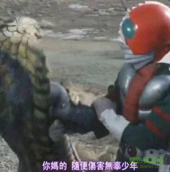 不得不说网友们还是很有才的。如果说上面这个表情是网友们的恶搞的话,那么下面要说的这个就是动画字幕组自身的恶意了。不知道大家有没有看过《假面骑士V3》。这是一部很多年前的假面骑士电视剧的其中一部。由于当年的审核制度并不太严格,所以给电视剧配翻译字幕的字幕组便开始放飞自我。
