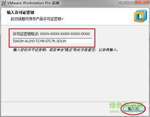 7.会自动生成一个许可证密钥(5A02H-AU243-TZJ49-GTC7K-3C61N),点击”输入“即可