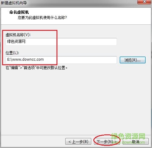 6.给虚拟机命名,任意名称都可以;设置“位置”,点击“下一步”