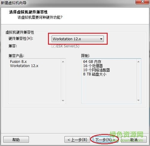 3.选择虚拟机硬件兼容性,默认即可(如果你安装了其他版本,可以更换),点击”下一步“