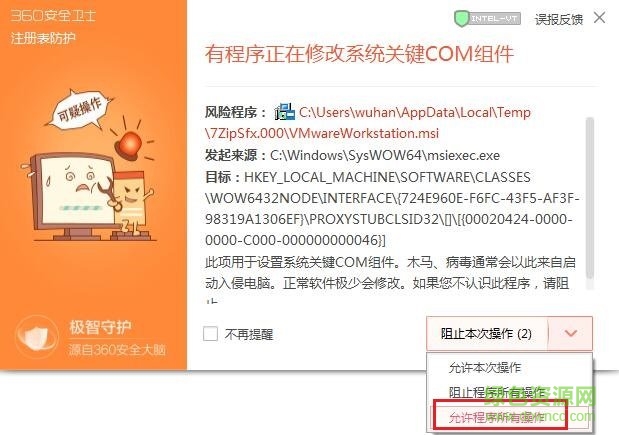 ps:如果自动安装过程中,360安全卫士等杀毒软件提示危险,请选择”运行程序所有操作“,小编亲测无毒,大家可以放心使用。
