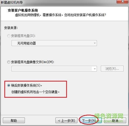 4.这里要勾选“稍后安装操作系统”,继续“下一步”