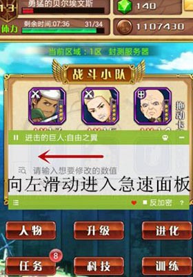 快速跳过战斗步骤3:接下来我们要点击悬浮窗口,并向左滑动进入加速面板。