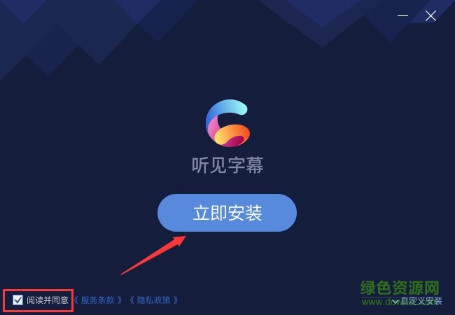 1、在绿色资源网站免费安装听见字幕客户端,打开安装包,解压运行;