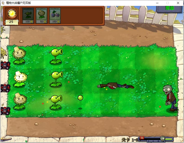 2、然后就可以进入到游戏环节,正常的种植植物,前期需要慢慢闯关解锁植物;