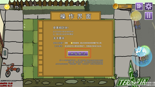 3、在这里会有游戏关卡介绍,看完之后就可以点击【开始战斗】;