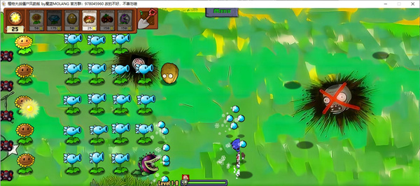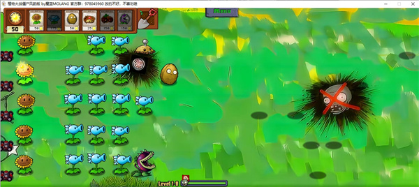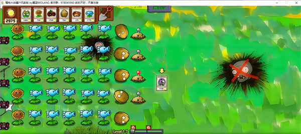 pvz风韵版是B站【魔蓝MOLANG】创作的一款pvz同人游戏,将会带来不一样的视觉效果,因为是宽屏,在改变界内还是比较少见的,所以可能会带来不一样的体验,而且游戏不是从最基础的关卡开启挑战,不给玩家适应的机会,一上来就是1-7关卡,强度直接拉满,而且游戏时间也比较长,玩家可以做好准备,和僵尸来一场时间的鏖战,体验游戏的精彩内容,开局就会解锁六个植物,你需要使用它们进行挑战,组建你认为最强大的阵容,看能不能阻挡它们。