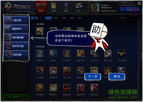 左侧游戏管理栏显示玩家最近所玩游戏记录,玩家还可自行设置左侧游戏栏,随心调整最近游戏顺序。